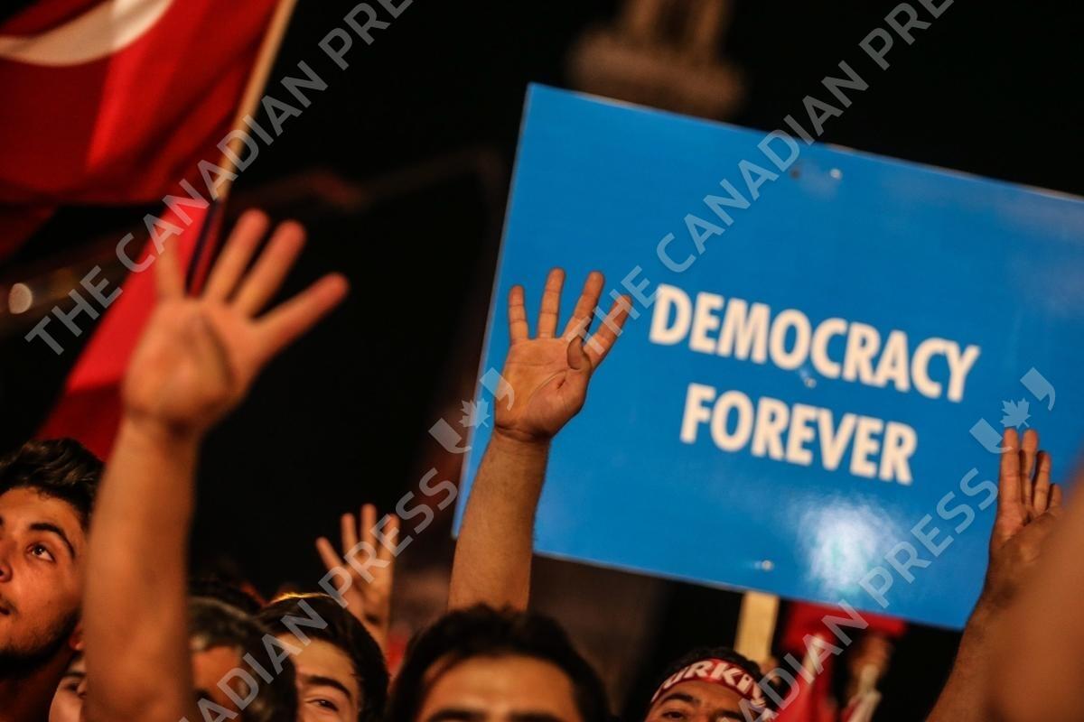 People gather at Konak Square against military coup attempt, in Izmir, Turkey, July 20, 2016. Turkish President Recep Tayyip Erdogan declared 3 month state of emergency and speak to the crowds via video conference from Ankara. Photo by Depo Photos/ABACAPRESS.COM