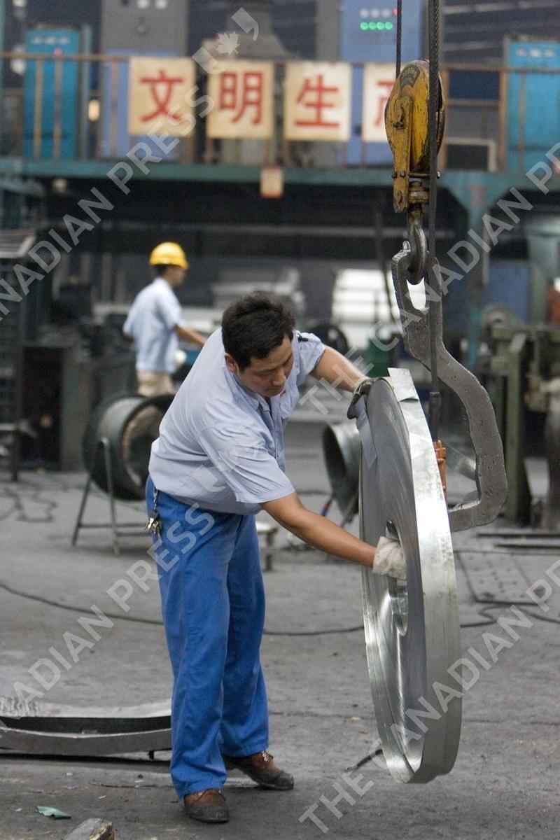 Steel workers in a steel factory in Huashi, near Jiangyin, Jiangsu province, China on June 27, 2009. Photo by Lucas Schifres/Pictobank/ABACAPRESS.COM