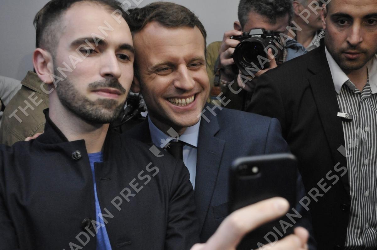 Presidential election candidate for the En Marche ! movement Emmanuel Macron greets supporters during a campaign rally in Saint-Denis, north of Paris, on March 30, 2017. Photo by Alain Apaydin/ABACAPRESS.COM