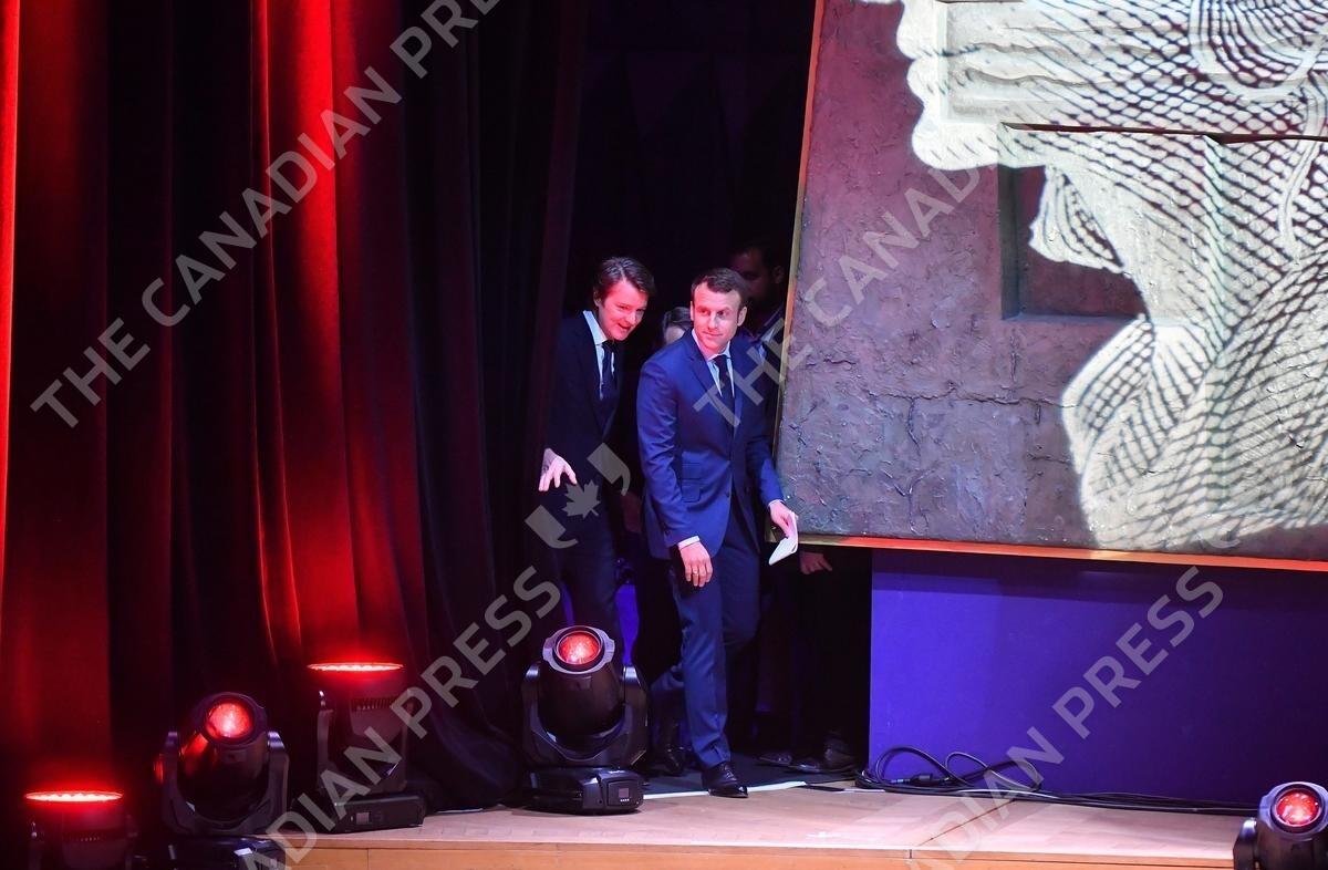 France's Mayors' Association (AMF) president Francois Baroin and former French Economy Minister and 'En Marche' (On the Move!) candidate for the upcoming presidential elections Emmanuel Macron during an extraordinary meeting of France's Mayors' Association (AMF), at Maison de la Radio in Paris, France on March 22, 2017. Photo by Christian Liewig/ABACAPRESS.COM
