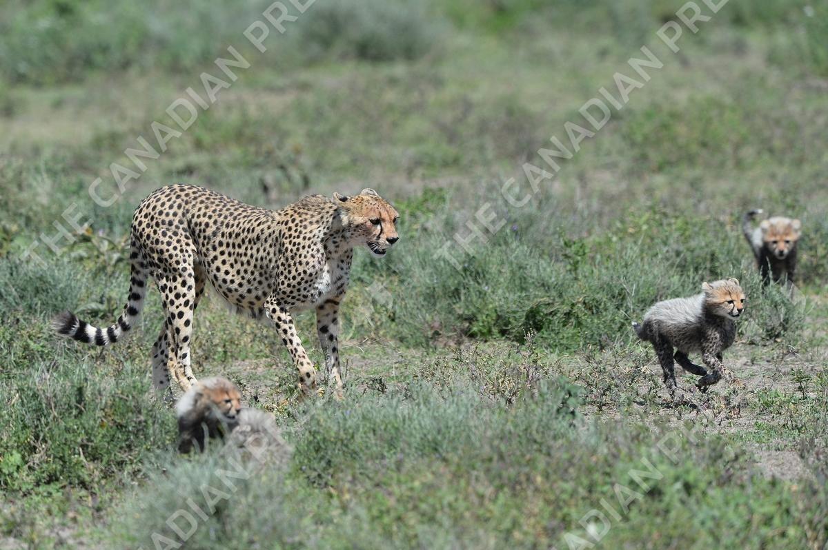 A female Cheetah is seen with her cubs in Ndutu area of Southern Serengeti National Park in Arusha Region, Tanzania, on August 25, 2019. Photo by Emy/ABACAPRESS.COM