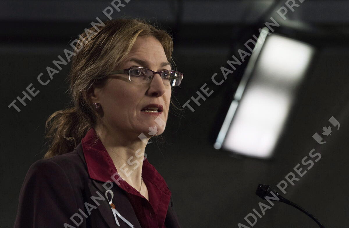 Poly Remembers co-ordinator Heidi Rathjen speaks during a news conference calling on the government for increased gun control in Ottawa, Thursday, November 30, 2017. THE CANADIAN PRESS/Adrian Wyld