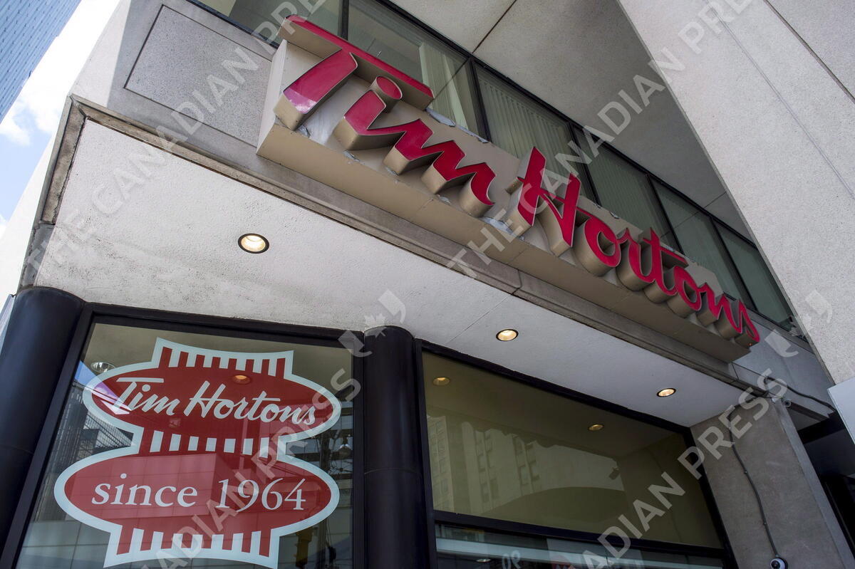 A Tim Hortons coffee shop is shown in downtown Toronto on Wednesday, June 29, 2016. Fast-food fans no longer have to go to, or even order from, their favourite eateries to indulge in a menu item. Grocery stores now stock a wide array of beloved items so superfans can heat up a St-Hubert chicken pot pie , slather on Swiss Chalet gravy sauce or whip up a pot of Tim Hortons homestyle chili at home.THE CANADIAN PRESS/Eduardo Lima