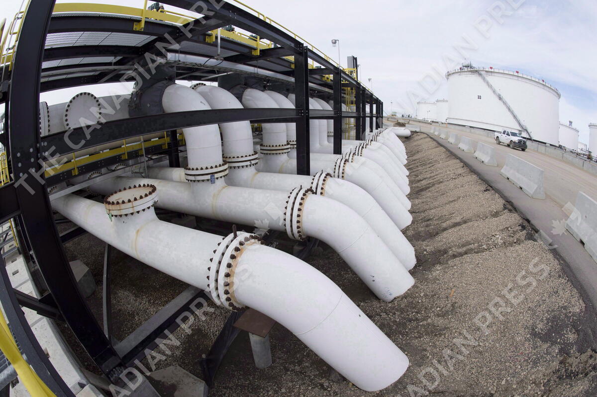 Pipes are seen at the Kinder Morgan Trans Mountain facility in Edmonton, Alta., Thursday, April 6, 2017. A Federal Court judge has granted the British Columbia government a temporary injunction against an Alberta law that could have limited oil exports to other provinces. THE CANADIAN PRESS/Jonathan Hayward