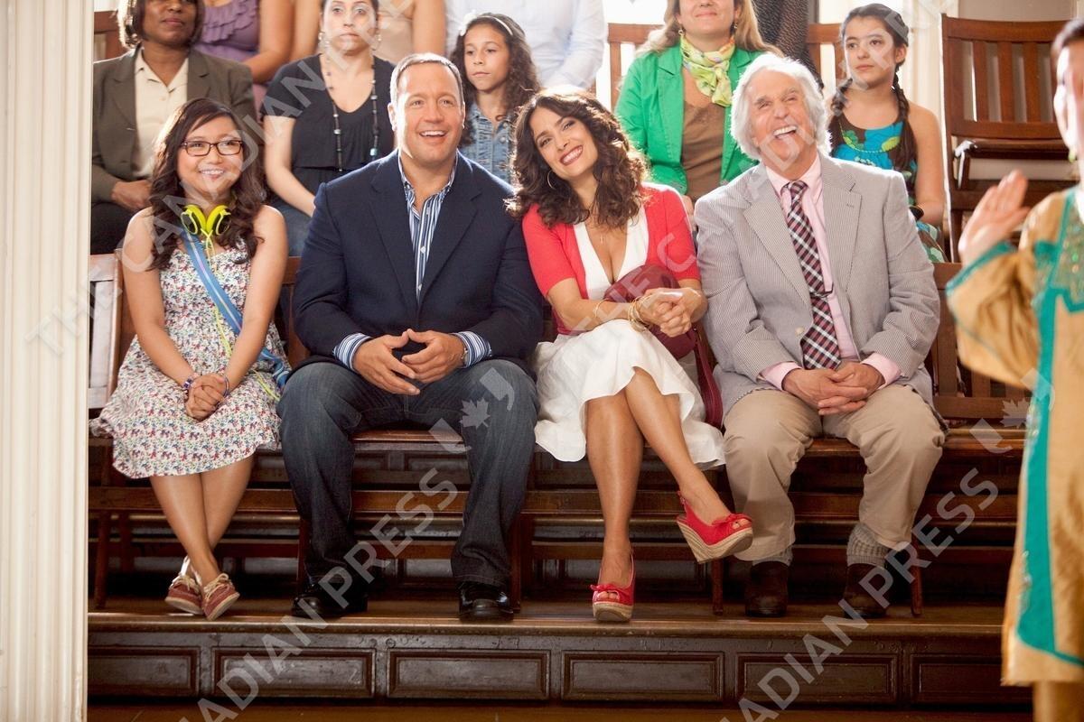 HERE COMES THE BOOM, Kevin James (blue jacket), Salma Hayek (legs crossed), Henry Winkler (right), 2012. ph: Tracy Bennett/©Sony Pictures/Courtesy Everett Collection