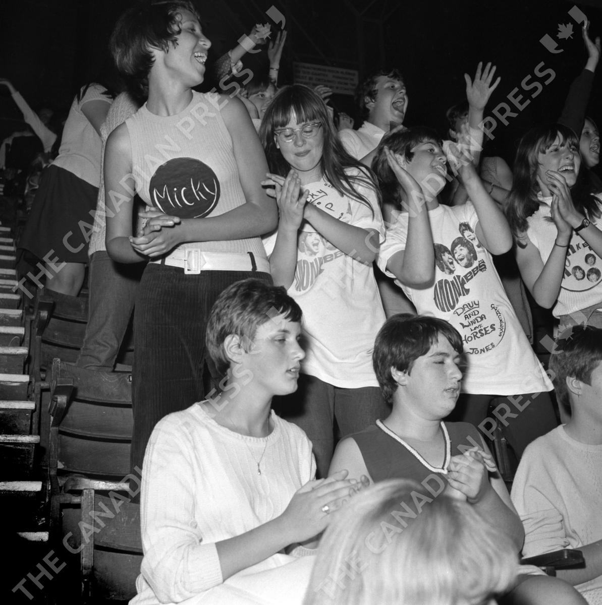 Hundreds of screaming female d=fans welcome the American pop group The Monkees on stage at the Empire Pool, Wembley, London.