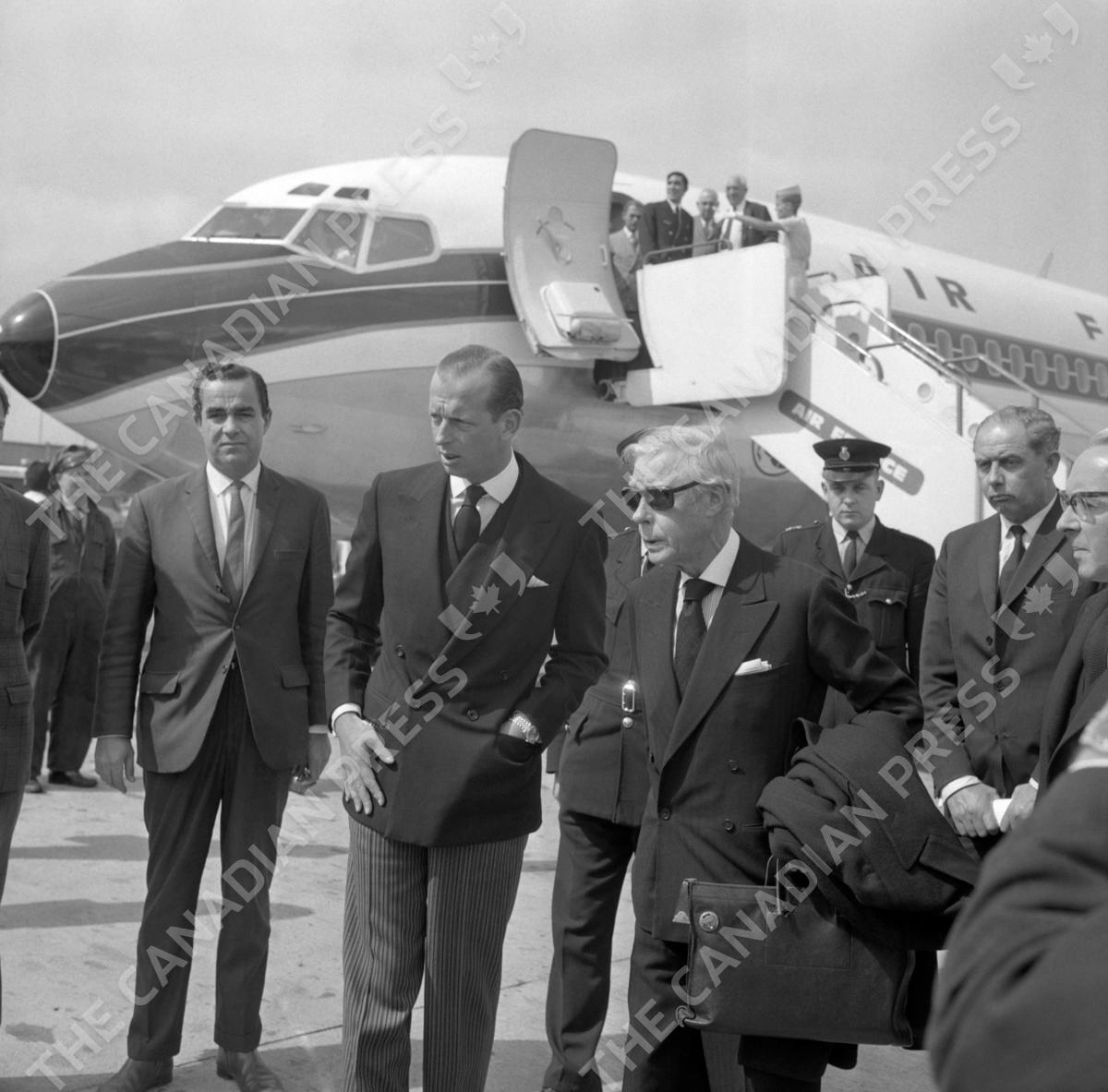 The Duke of Windsor, right, and his nephew, the Duke of Kent, at Heathrow Airport on the Duke of Windsor's arrival from Paris to attend the funeral of his sister-in-law, Princess Marina, Duchess of Kent, at St George's Chapel, Windsor.