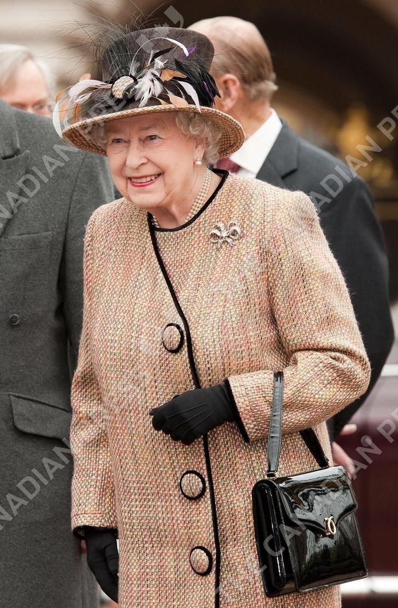 Britain's Queen Elizabeth II arrives at the central gates of Buckingham Palace in London, where she unveiled the first Jubilee Greenway Disc, part of a 60km route linking the West End of London with the East End.