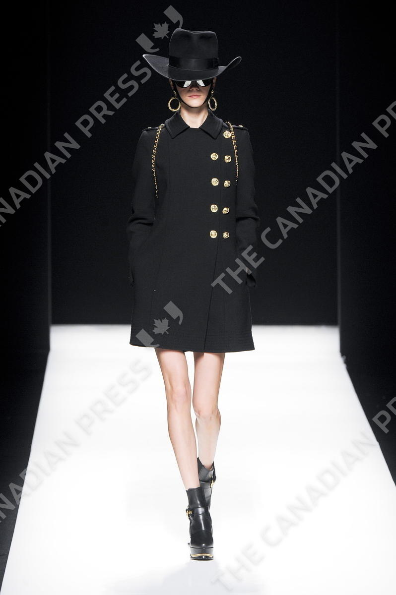 Models display a creation by Blumarine for the Fall-Winter 2012-2013 Ready-To-Wear collection show held at Hotel National des Invalides in Paris, France