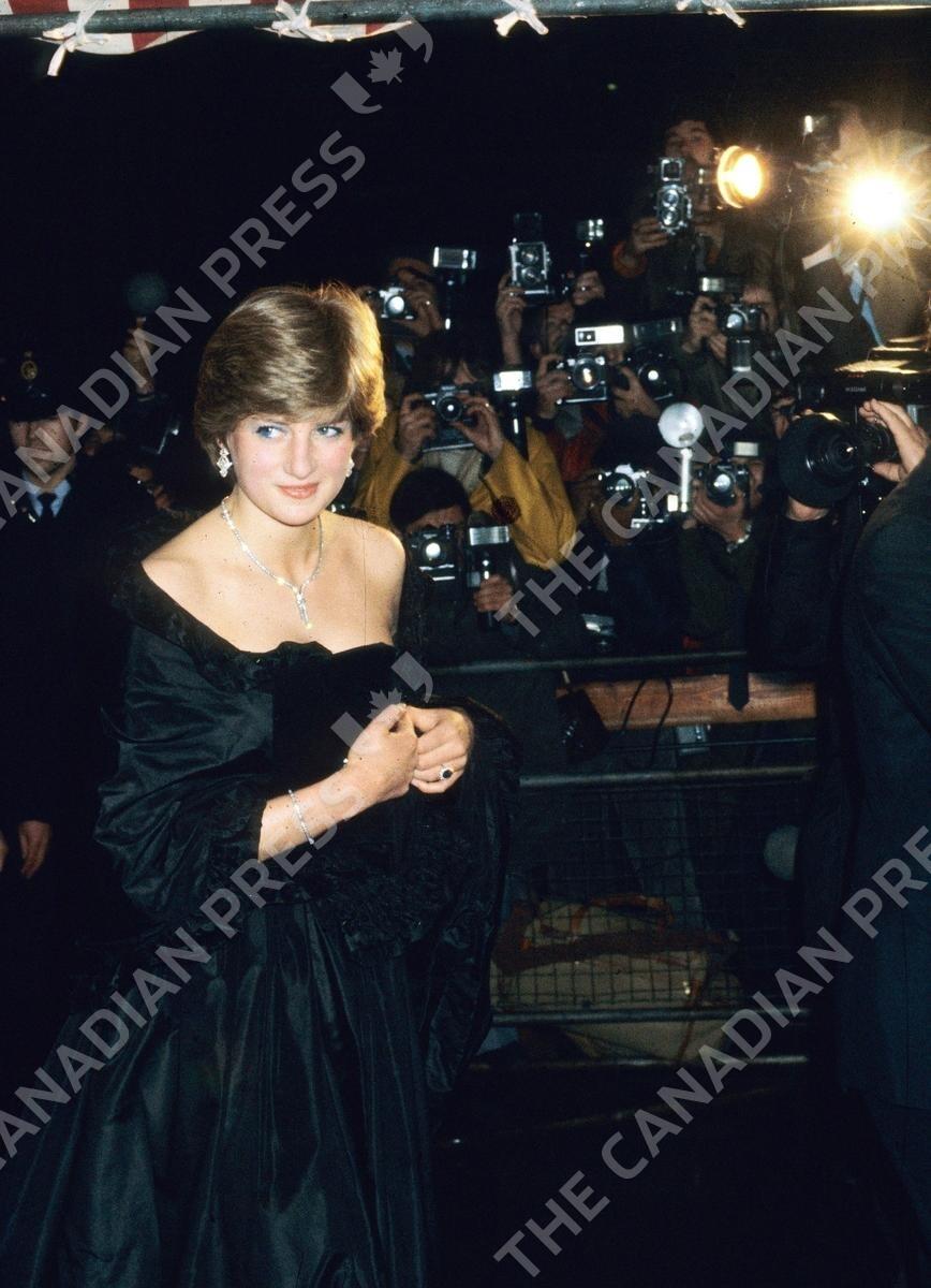 **FILE PHOTO** Lady Diana Spencer, later to become Diana, Princess of Wales, sets the flashbulbs popping as she wears a revealing Emanuel black dress attending her first official engagement with Prince Charles at a fundraising concert at the Goldsmiths Hall in London in March 1981.