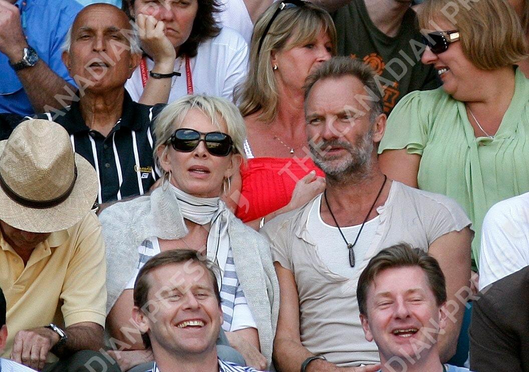 Sting, with wife Trudi Styler watch the action on Centre Court