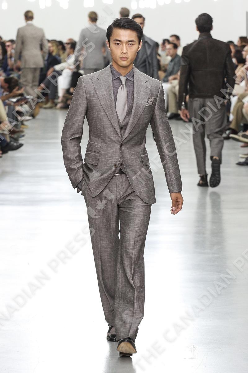 A model wears a creation part of the Corneliani men's Spring-Summer 2013 fashion collection that was presented in Milan, Italy