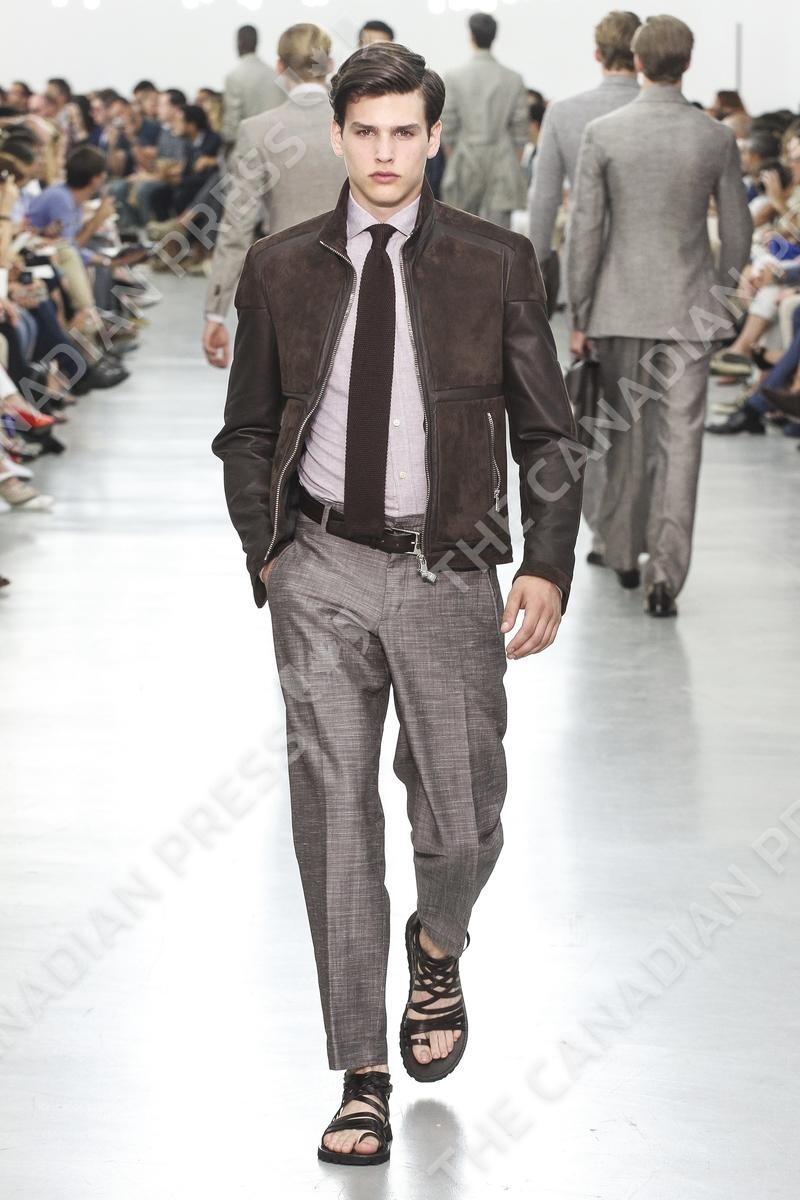 A model wears a creation part of the Corneliani men's Spring-Summer 2013 fashion collection that was presented in Milan, Italy