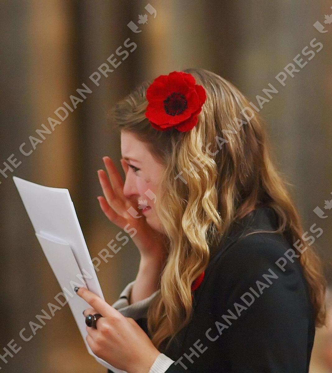 New Zealand opera singer Hayley Westenra weeps during her testimonial at the Christchurch Earthquake Memorial service attended by Prince Charles, Prince of Wales, at Westminster Abbey, London, Sunday March 27, 2011. (AP Photo/Max Nash, Pool)