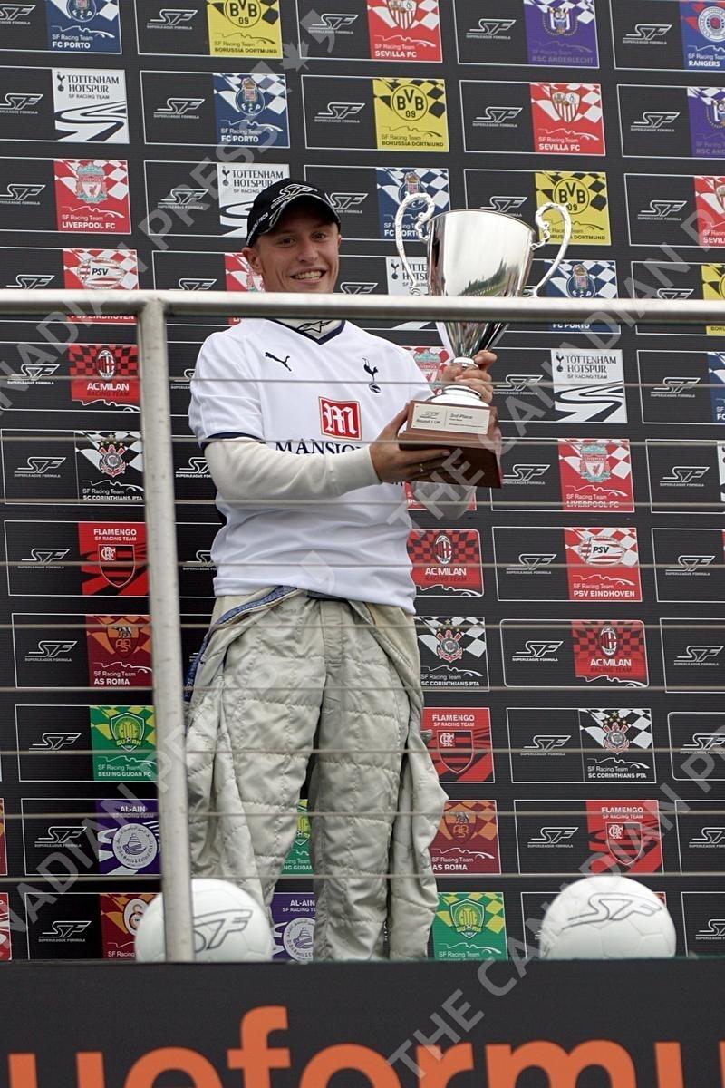 Tottenham Hotspur's Duncan Tappy celebrates his third place