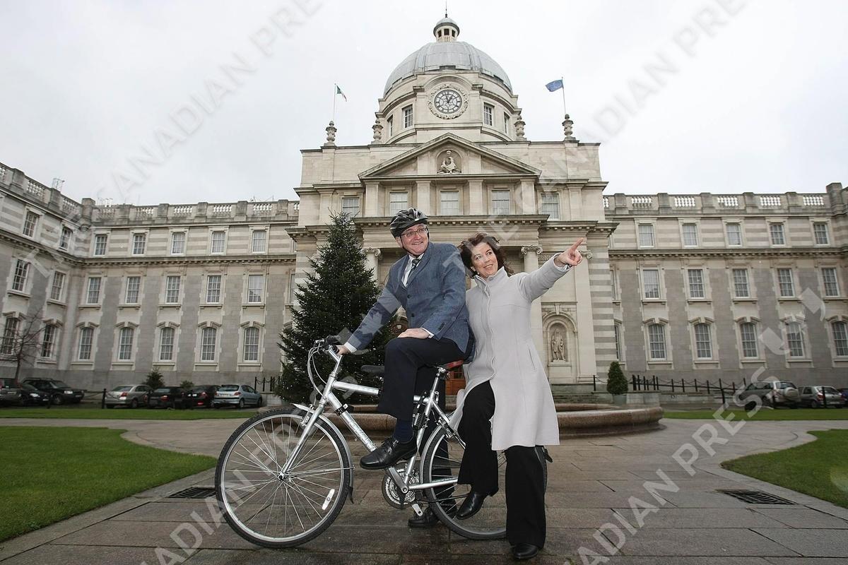 Environment Minister John Gormley (left) and Green Party's European election candidate for Dublin Senator, Deirdre de Burca, at Government Buildings in Dublin, where they unveiled a new Government tax break to encourage people to cycle to work. Further information can be found at www.bikescheme.ie.