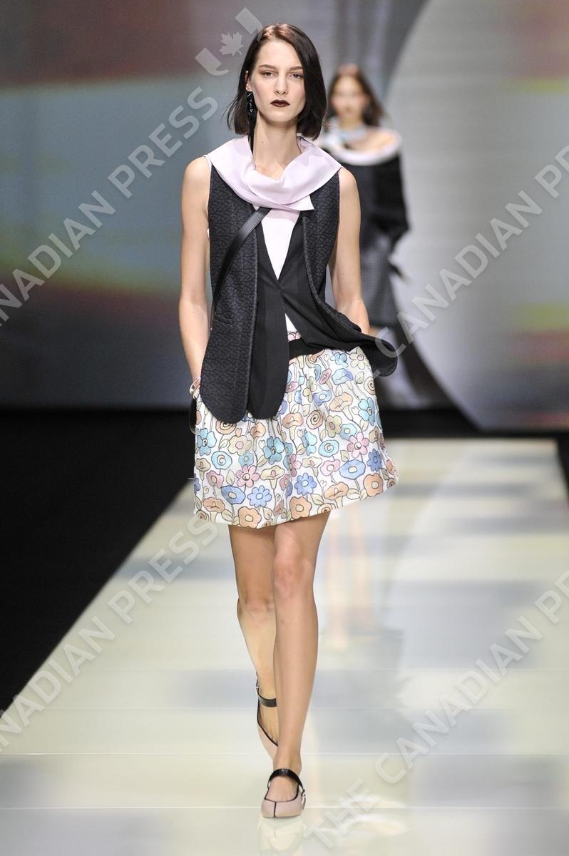 Models on the catwalk during the Womens Spring Summer 2016 Emporio Armani catwalk show held in Milan, Italy.