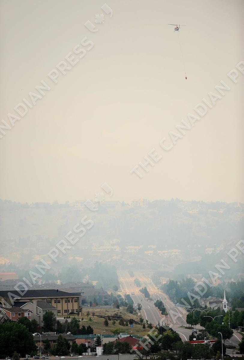 A helicopter flies over Centennial Boulevard while fighting the Waldo Canyon fire Wednesday, June 27, 2012, near Colorado Springs, Colorado. Photo by Christian Murdock/Colorado Springs Gazette/MCT/ABACAPRESS.COM