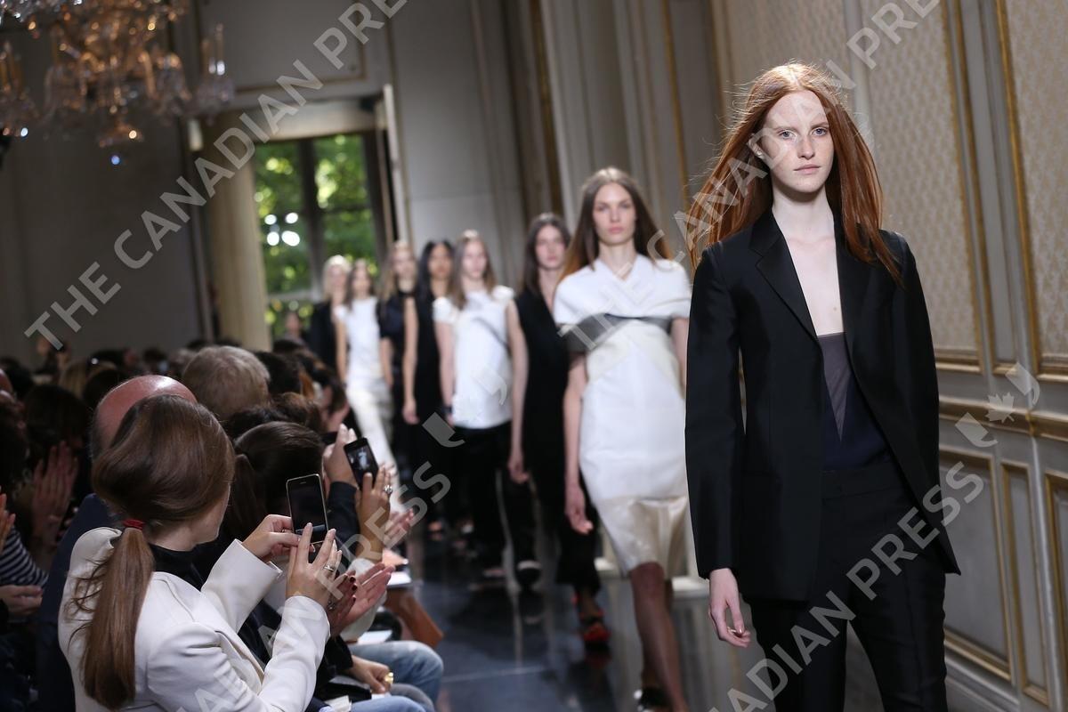 A model displays a creation by British designer Phoebe Philo for Celine Spring-Summer 2013 Ready-To-Wear collection show in Paris, France, on September 30, 2012. Photo by Frederic Nebinger/ABACAPRESS.COM