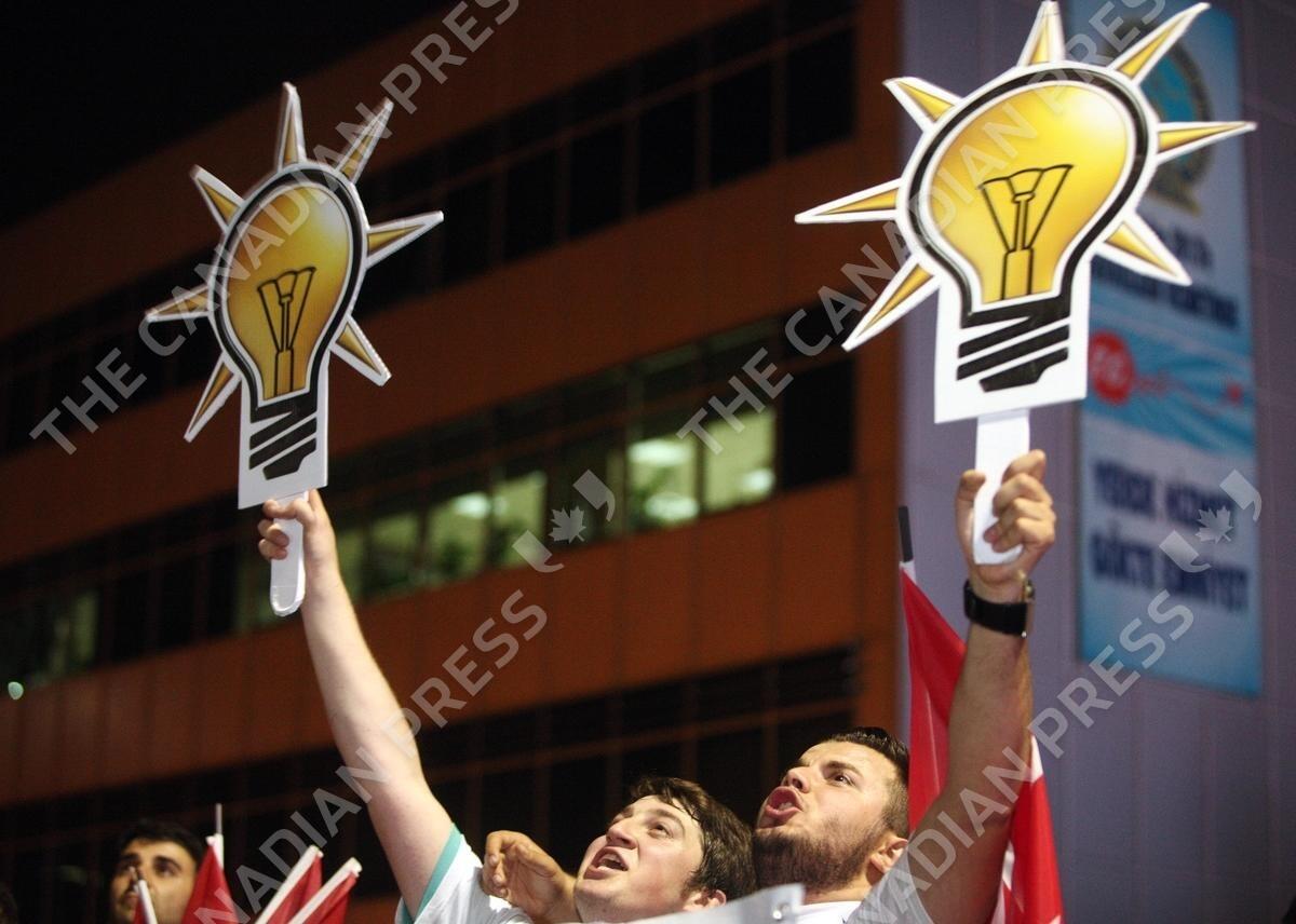 Supporters of Turkish prime minister Recep Tayyip Erdogan wave their national flag in Istanbul, Turkey, on June 7, 2013. Thousands of supporters greeted the prime minister at Istanbul airport on his return from a North African tour. Photo by DEPOPHOTOS/ABACAPRESS. COM