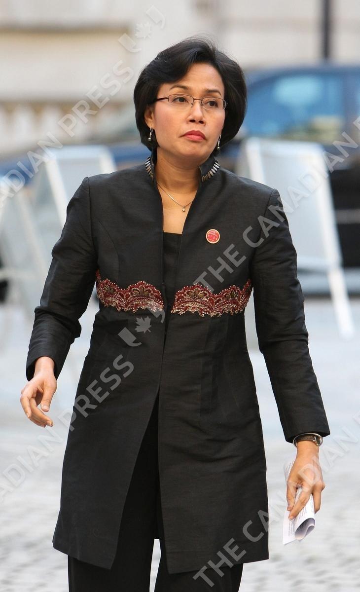 Indonesian Finance Minister Sri Mulyani Indrawati arrives for the G20 finance Minister's summit at the Treasury in Westminster, London, Saturday Sept. 5, 2009. British Prime Minister Gordon Brown called on Group of 20 leaders to make a strong and clear commitment to continued efforts to boost global growth, saying Saturday that the world economy is at a "critical juncture." Addressing finance officials from the G-20 rich and developing countries at the start of their talks here, Brown warned against "complacency or overconfidence" in the face of mounting signs of at least a modest economic upturn. (AP Photo/Dominic Lipinski, Pool)