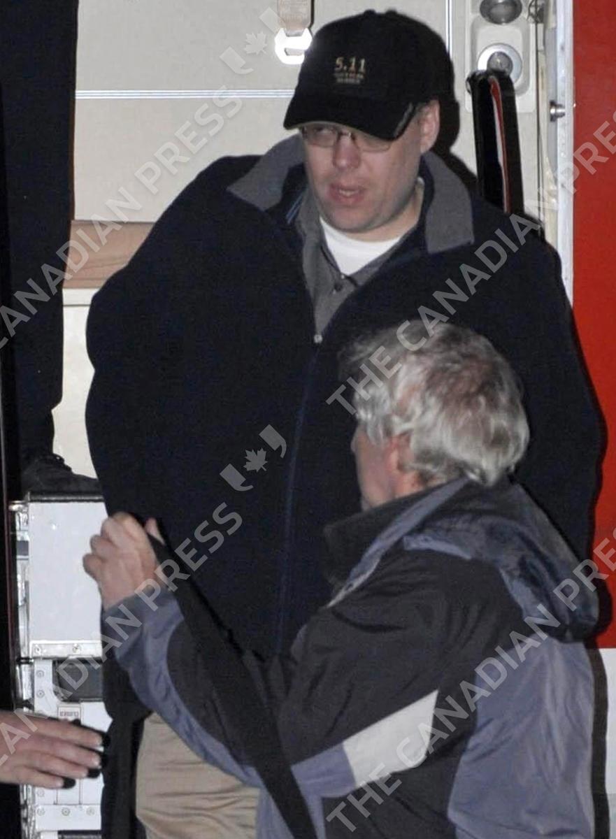 ** CORRECTS IMAGE STATUS TO POOL, REMOVES RESTRICTIONS, CORRECTS YEAR - ALTERNATE CROP OF LON807 ** Freed British hostage Peter Moore, at top, arrives at RAF Brize Norton, Oxfordshire, England, Friday, Jan. 1, 2010. British officials say former hostage Peter Moore has arrived safely back in Britain after his long captivity in Iraq. (AP Photo/Ben Birchall, Pool)