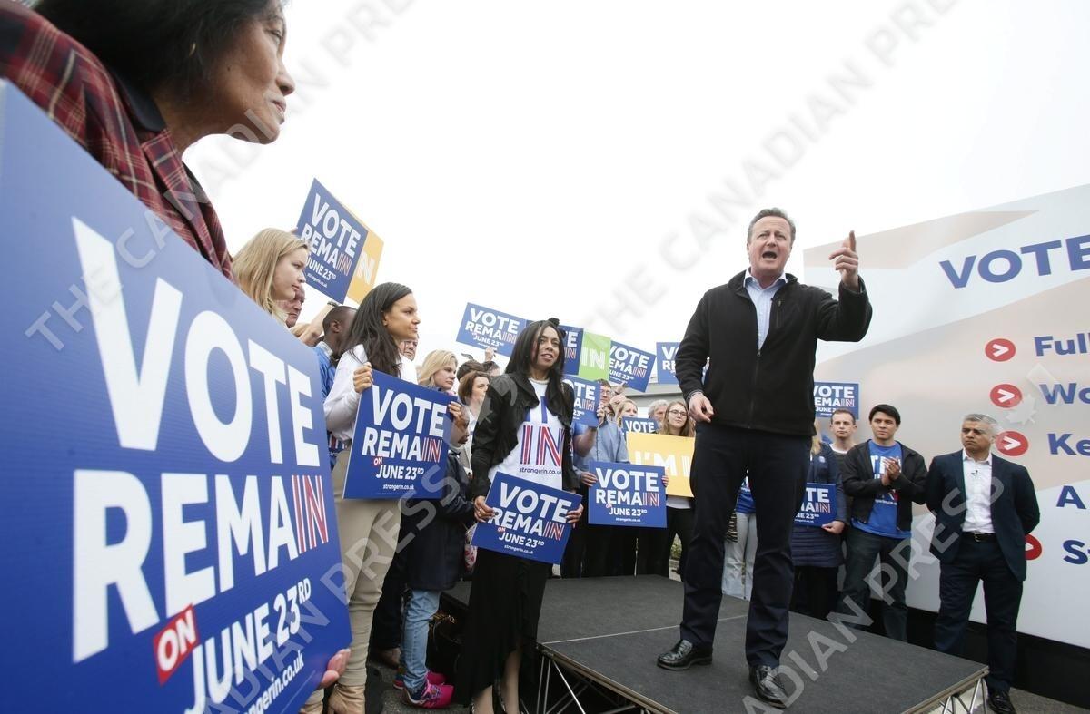 Prime Minister David Cameron makes a joint appearance with Mayor of London Sadiq Khan (right) as they launch the Britain Stronger in Europe guarantee card at Roehampton University in West London.