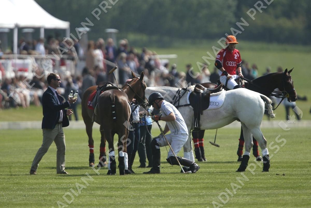 Prince Harry (centre) takes part in a polo match at Coworth Park, Ascot.