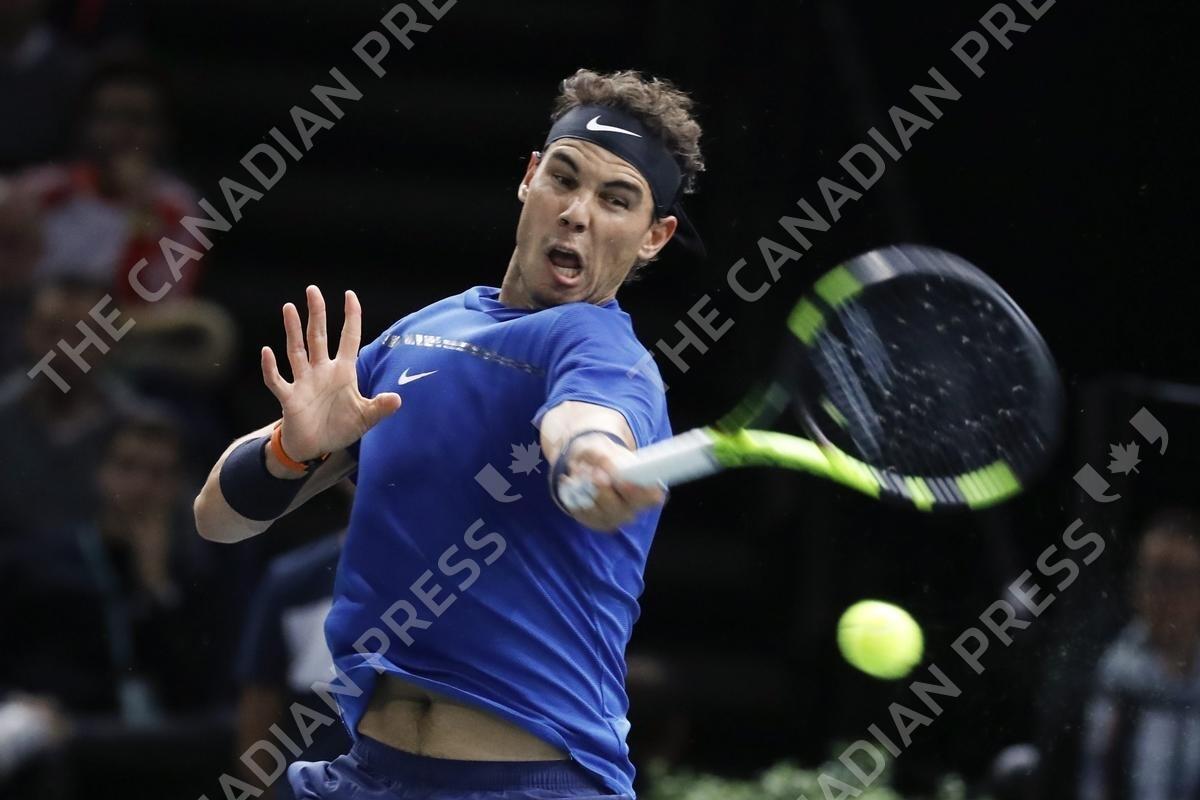 Spain's Rafael Nadal playing in the second round of the 2017 Rolex Masters Series 1000, in the Accor Hotels Arena, Paris, France, on November 1st, 2017. Photo by Henri Szwarc/ABACAPRESS.COM