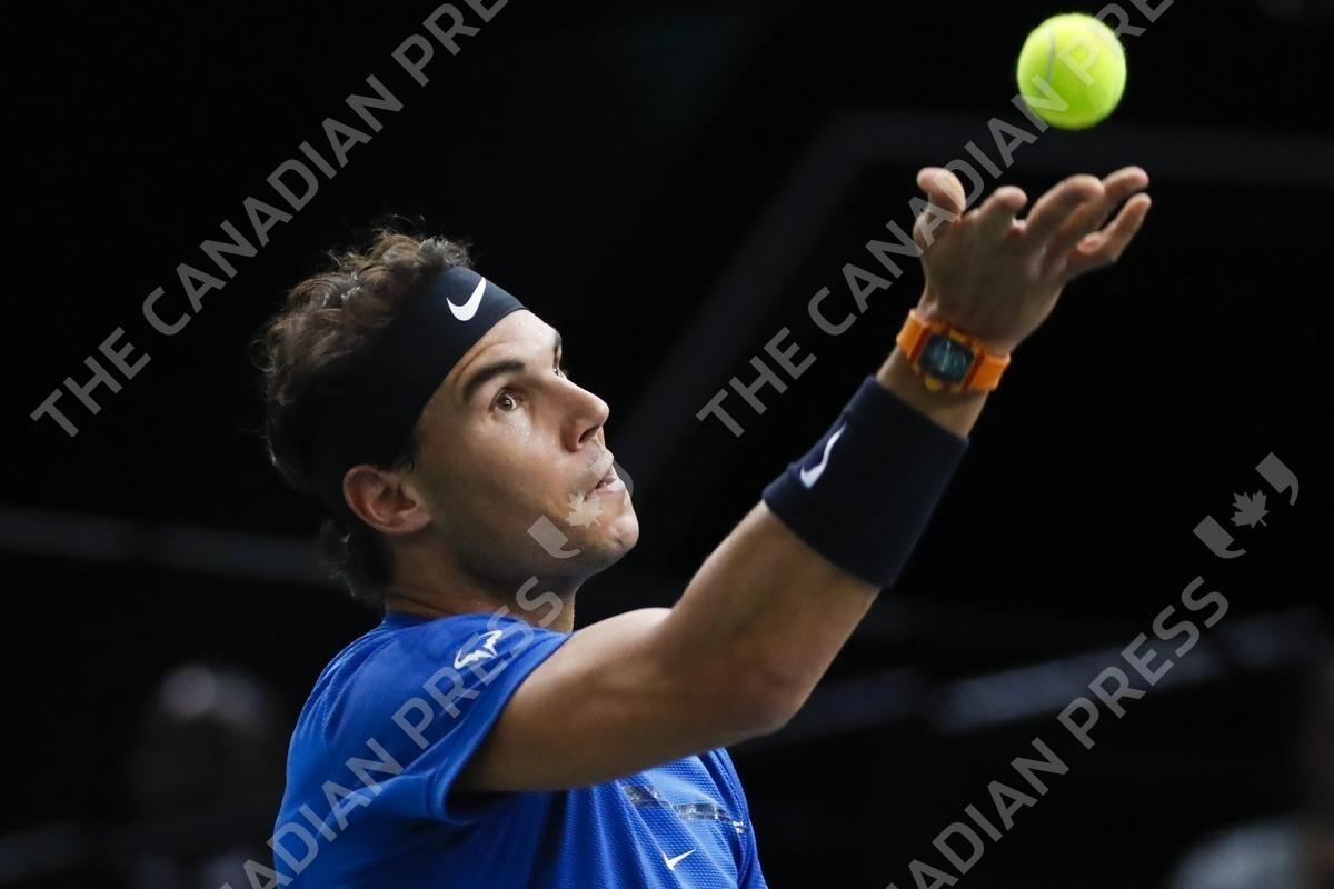 Spain's Rafael Nadal playing in the second round of the 2017 Rolex Masters Series 1000, in the Accor Hotels Arena, Paris, France, on November 1st, 2017. Photo by Henri Szwarc/ABACAPRESS.COM