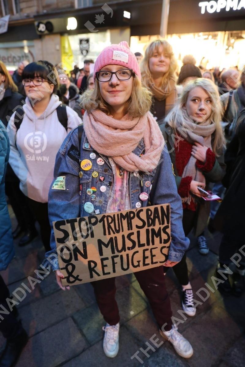 Demonstrators during a protest in Glasgow against US President Donald Trump's controversial travel ban on refugees and people from seven mainly-Muslim countries.