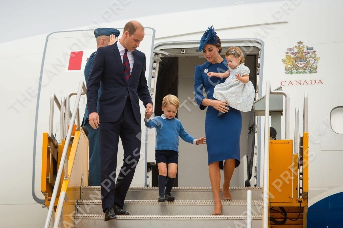 The Duke and Duchess of Cambridge with their children Prince George and Princess Charlotte walk down the aircraft steps as they arrive at Victoria International Airport, in Victoria, Canada, on the first day of their official tour of Canada.
