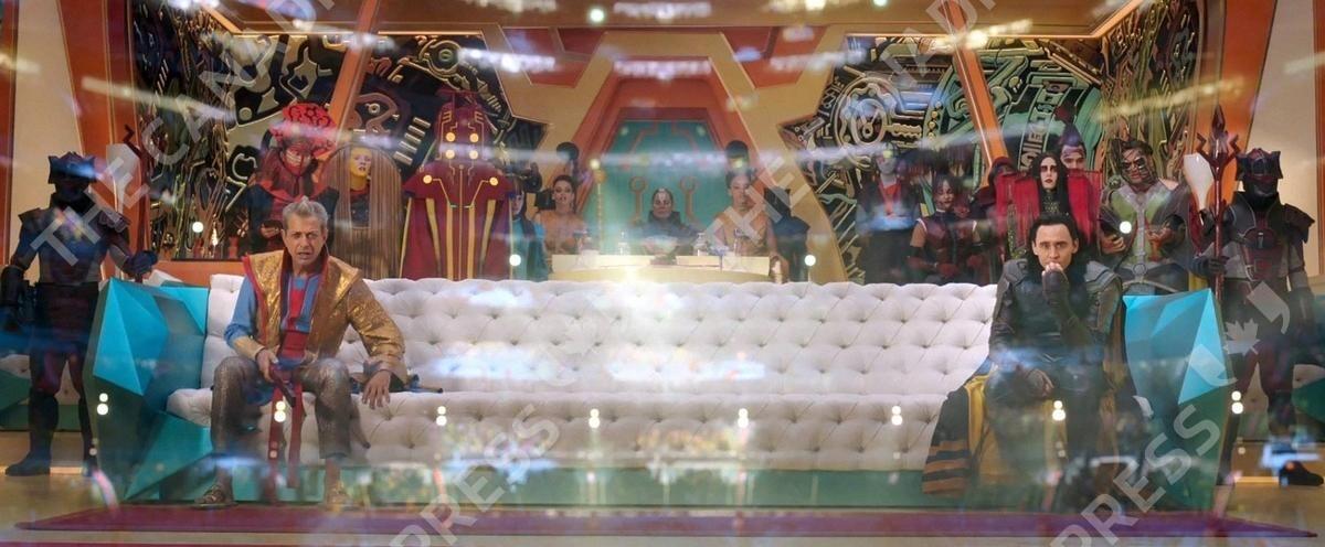 THOR: RAGNAROK, seated l-r: Jeff Goldblum as Grandmaster, Tom Hiddleston as Loki, 2017. ©Walt Disney Studios Motion Pictures/courtesy Everett Collection