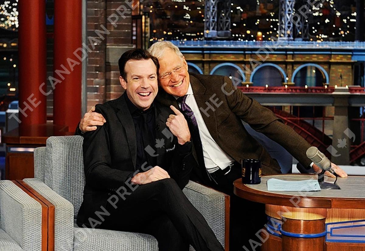 LATE SHOW WITH DAVID LETTERMAN, l-r: Jason Sudeikis, David Letterman (Season 21, Episode 224, aired November 17, 2014). ph: Jeffrey R. Staab/©CBS/courtesy Everett Collection