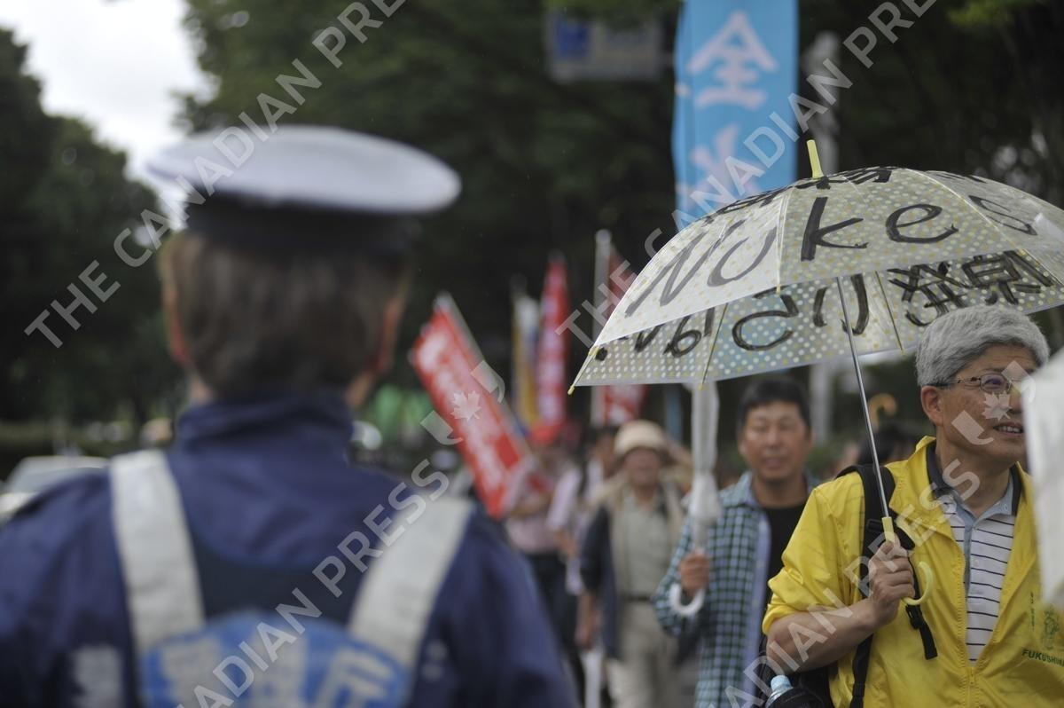 Protest against the restart of the two units nuclear reactors likely to start this year at Kyushu Electric Power Co.'s Sendai plant in southern Japan. Tokyo on June 28, 2014 Photo by David Mareuil/ABACAPRESS.COM