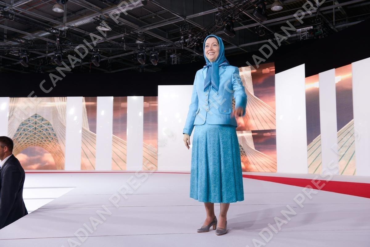 Maryam Rajavi, president of the National Council of Resistance of Iran (NCRI), delivers a speech at the annual meeting of the Iranian resistance in Villepinte, north of Paris, France, on June 27, 2014. Thousands of exiled Iranians as well as dignitaries from many countries attended the meeting. Photo by Ammar Abd Rabbo/ABACAPRESS.COM