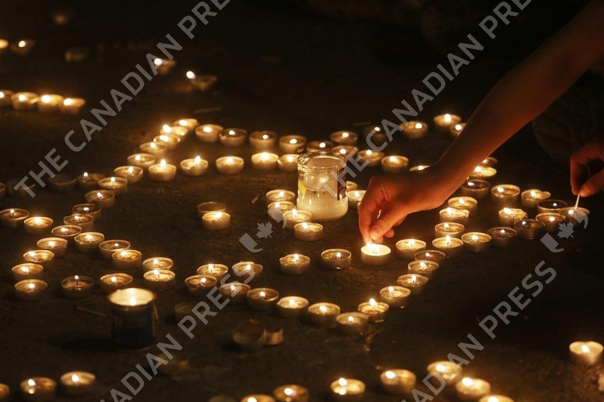 Israeli settlers pray, light candles and hold flags on June 30, 2014 at the enterence to Halhoul north of Hebron, West Bank. The bodies of three Israeli teenagers who were kidnapped 18 days ago in the West Bank have been found, it was announced Monday night. The bodies were found north of the Palestinian town Halhul, just north of Hebron.