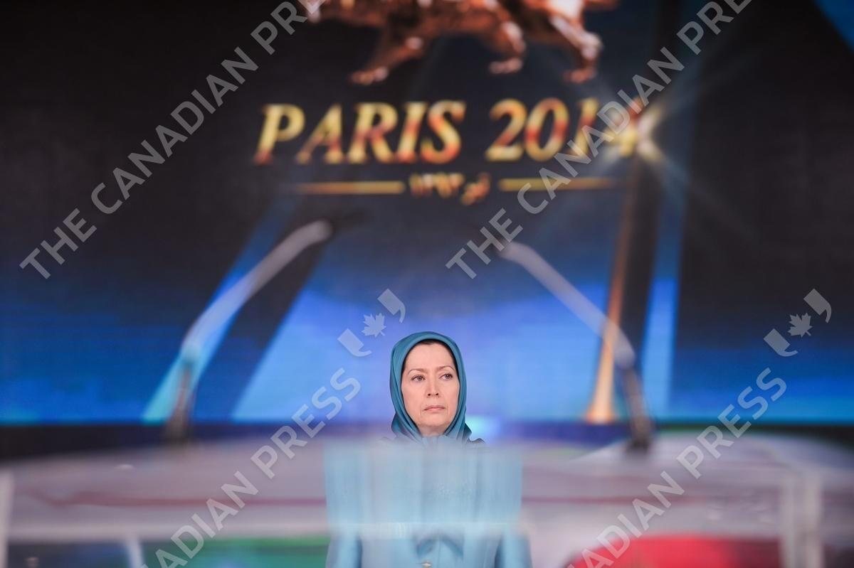 Maryam Rajavi, president of the National Council of Resistance of Iran (NCRI), delivers a speech at the annual meeting of the Iranian resistance in Villepinte, north of Paris, France, on June 27, 2014. Thousands of exiled Iranians as well as dignitaries from many countries attended the meeting. Photo by Ammar Abd Rabbo/ABACAPRESS.COM