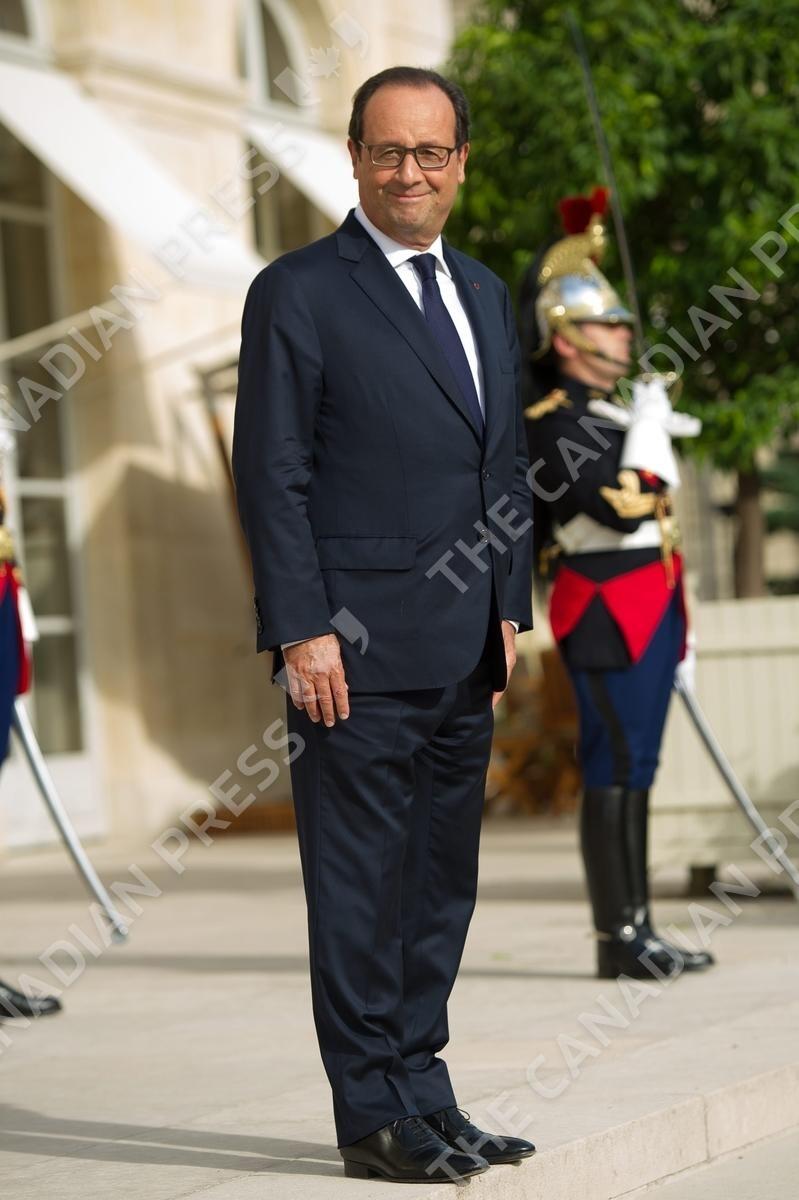 French president Francois Hollande welcomes Palestinian president Mahmoud Abbas at the Elysee presidential palace prior to their meeting on September 19, 2014 in Paris.photo Thierry Orban/Abacpress.com