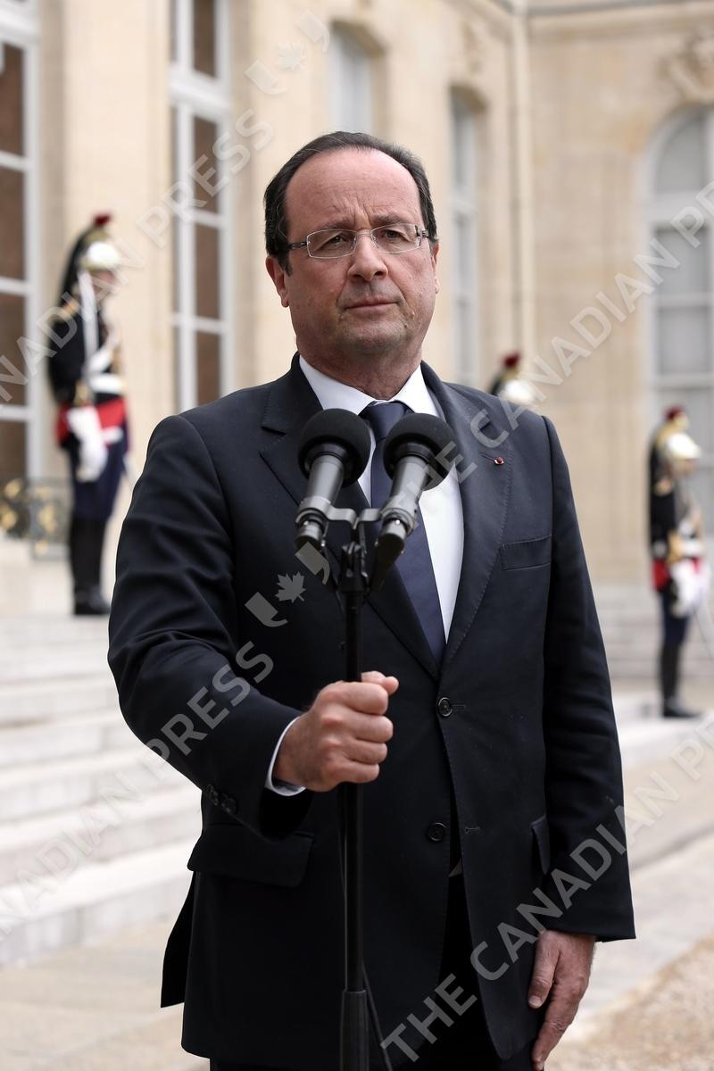 French President Francois Hollande speaks to medias after a meeting with Palestine's authority president Mahmud Abbas at the Elysee presidential Palace, in Paris, France, on september 12, 2013. Photo by Stephane Lemouton/ABACAPRESS. COM