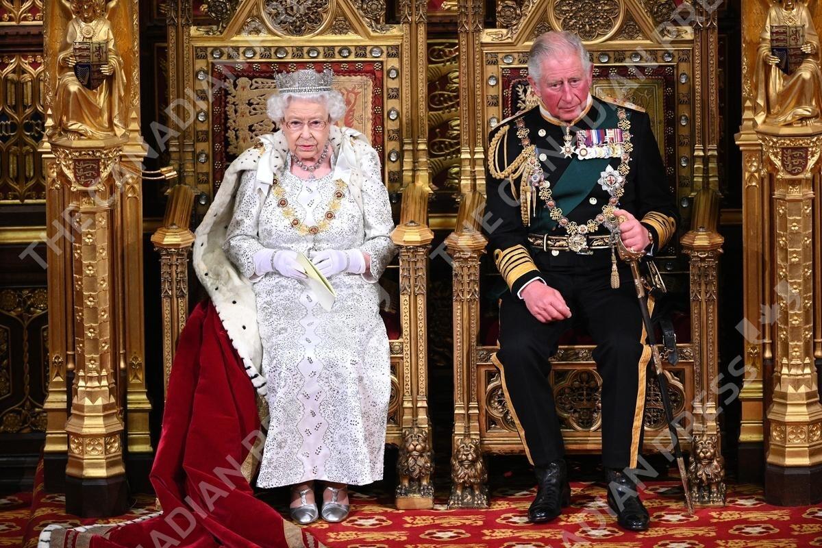 Queen Elizabeth II and the Prince of Wales during the State Opening of Parliament in the House of Lords at the Palace of Westminster in London.