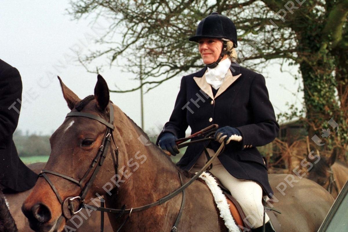 Camilla Parker Bowles a close friend of Prince of Wales hunting with the Duke of Beaufort's Hounds near to Badminton today (Saturday). See PA Story. Photo Barry Batchelor/PA