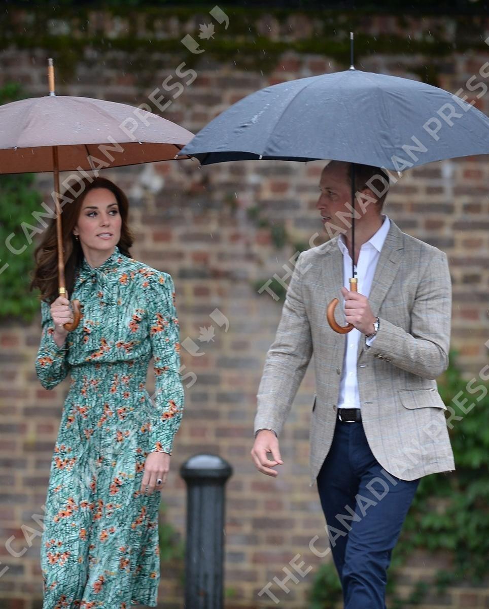 The Duke and Duchess of Cambridge arrive for a visit to the White Garden in Kensington Palace, London and to meet with representatives from charities supported by Diana, the Princess of Wales.