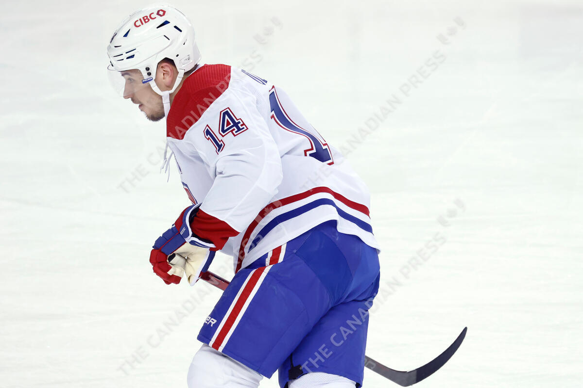 NHL profile photo on Montreal Canadiens player Nick Suzuki at a game against the Calgary Flames in Calgary, Alta., on March 16, 2024. THE CANADIAN PRESS IMAGES/Larry MacDougal