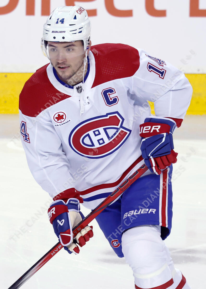 NHL profile photo on Montreal Canadiens player Nick Suzuki at a game against the Calgary Flames in Calgary, Alta., on March 16, 2024. THE CANADIAN PRESS IMAGES/Larry MacDougal