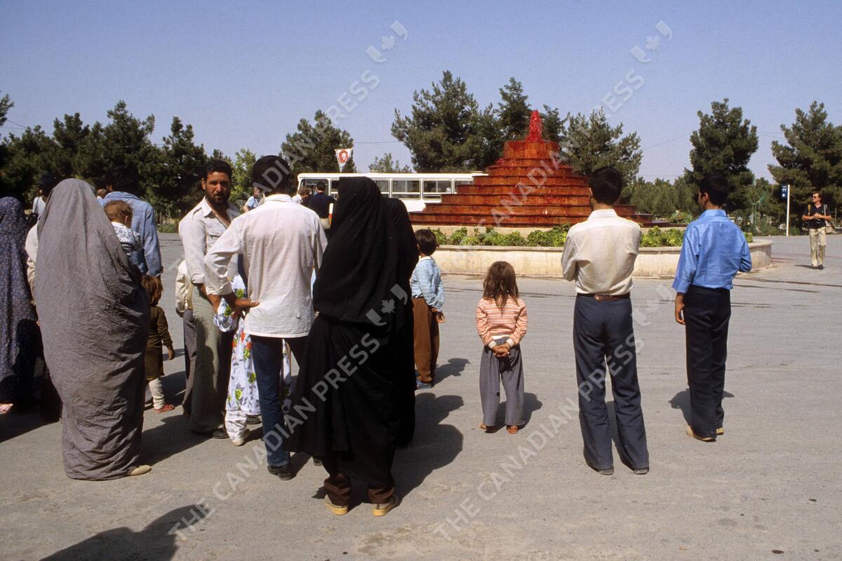 Blutbrunnen auf dem Märtyrer Friedhof in Teheran, Personen; 1984, Teheran, Iran; , quer, Kbdia, Totale, Islam, Religion, , , Asien; Aufnahmedatum geschätzt