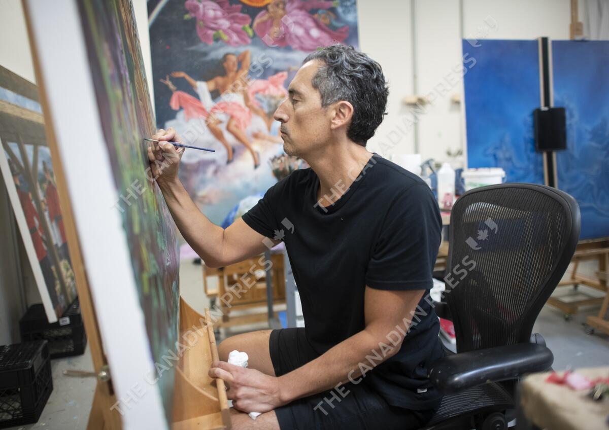Final work and refining on paintings that will be form the Kent Monkman: Being Legendary exhibit at the Royal Ontario Museum, are photographed on August 30, 2022. Fred Lum/The Globe and Mail. The show will run from Oct 8 2022 through to March 19 2023.