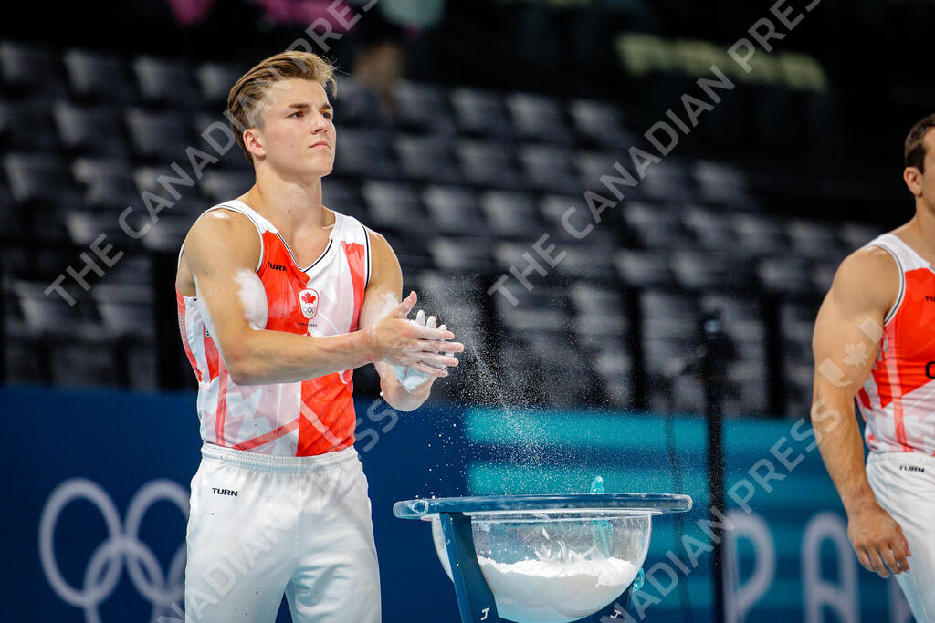 Félix Dolci lors de la sceance d’entrainement de l’equipe canadienne de gymastique au Jeux Olympique 2024 de Paris