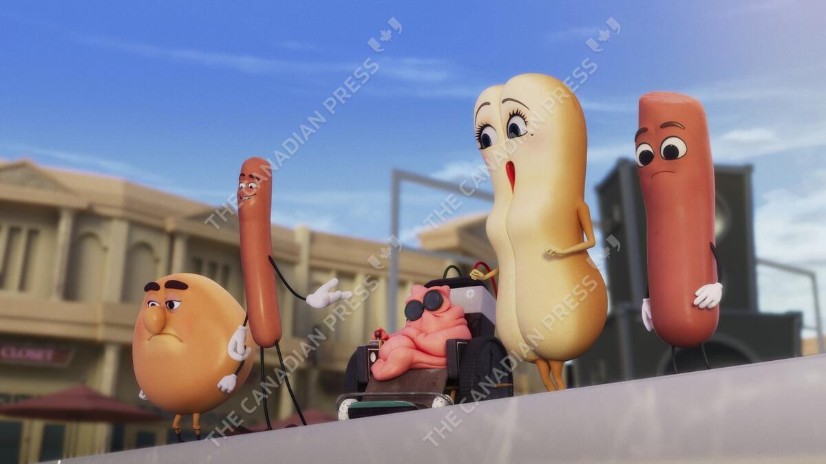 SAUSAGE PARTY: FOODTOPIA, from left: Sammy (voice: Edward Norton), Frank (voice: Seth Rogen), Gum (voice: Scott Underwood), Brenda (voice: Kristen Wiig), Barry (voice: Michael Cera), 'First Course', (Season 1, ep. 101, aired July 11, 2024). photo: ©Amazon / Courtesy Everett Collection