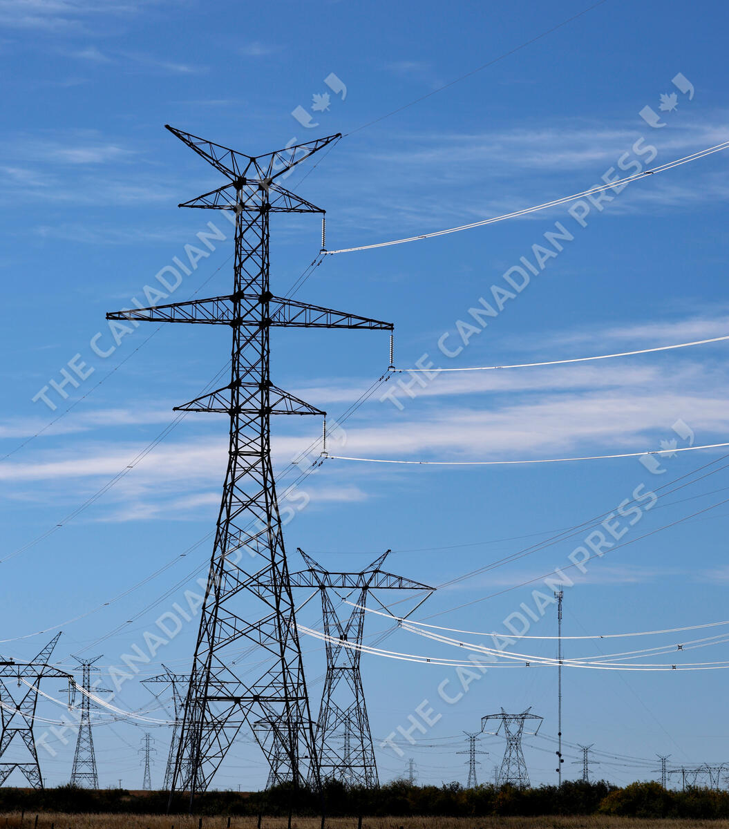 Power lines shimmer in te sunlight near Dutchess, Alta., on Sept. 24, 2024. THE CANADIAN PRESS/Larry MacDougal